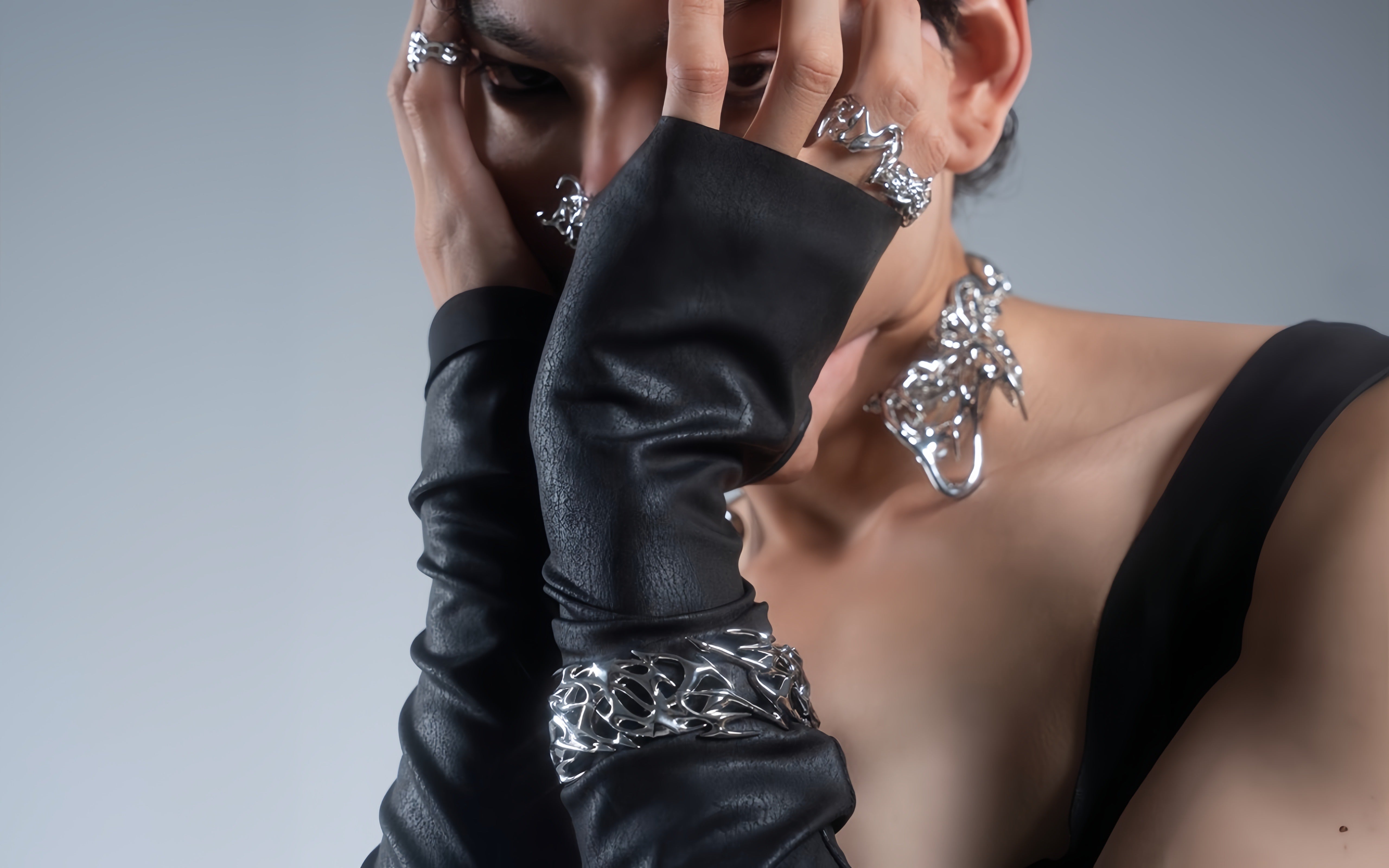 Dive into Posthuman Lab realm where cyber aesthetics and 3D Printing technology converge, crafting accessories for the neo Homo Sapience.