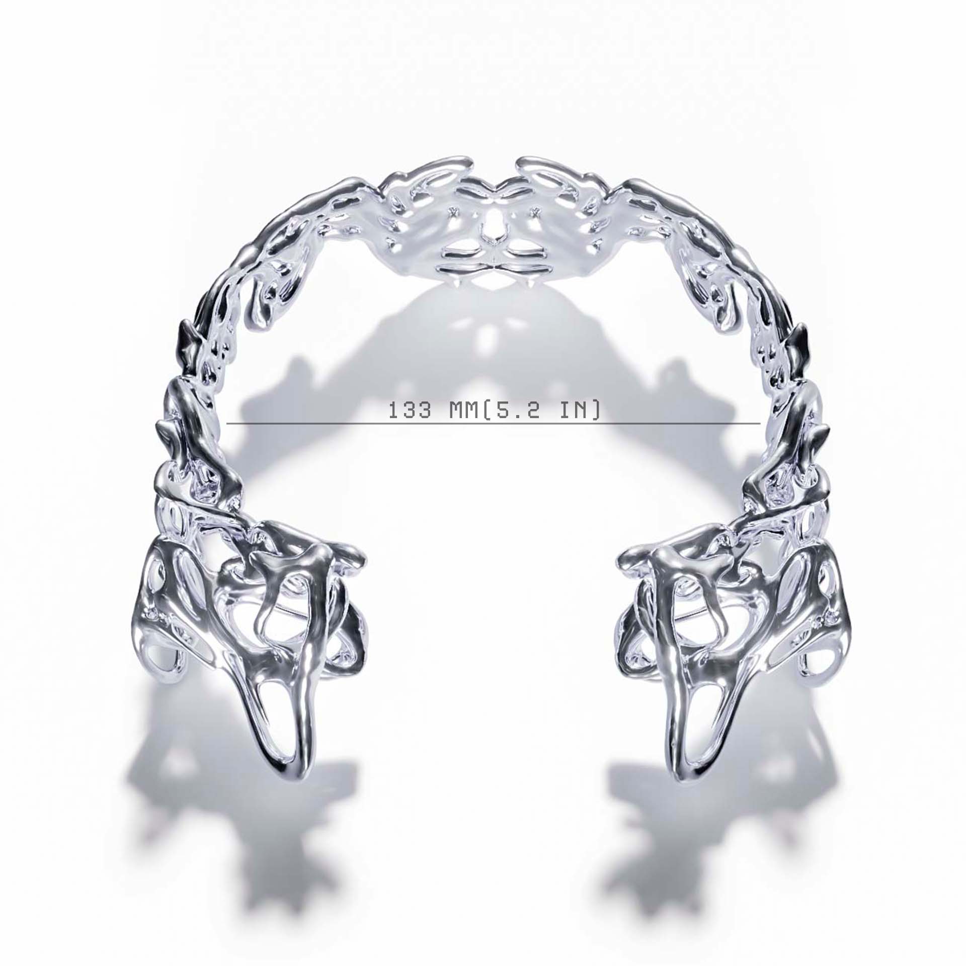 THIS ITEM IS IMPOSSIBLE TO PRODUCE WITH TRADITIONAL MEANS OF MANUFACTURE. AFTER 2 YEARS OF R&D, ONLY CUTTING-EDGE 3D PRINTING COULD ACHIEVE THIS LEVEL OF DETAIL AND COMPLEXITY. COUPLED UP WITH ADVANCED METAL COATING TECHNOLOGY, THIS PIECE ENSURES UNPARALLELED DURABILITY AND A MIRROR-LIKE CHROME FINISH.