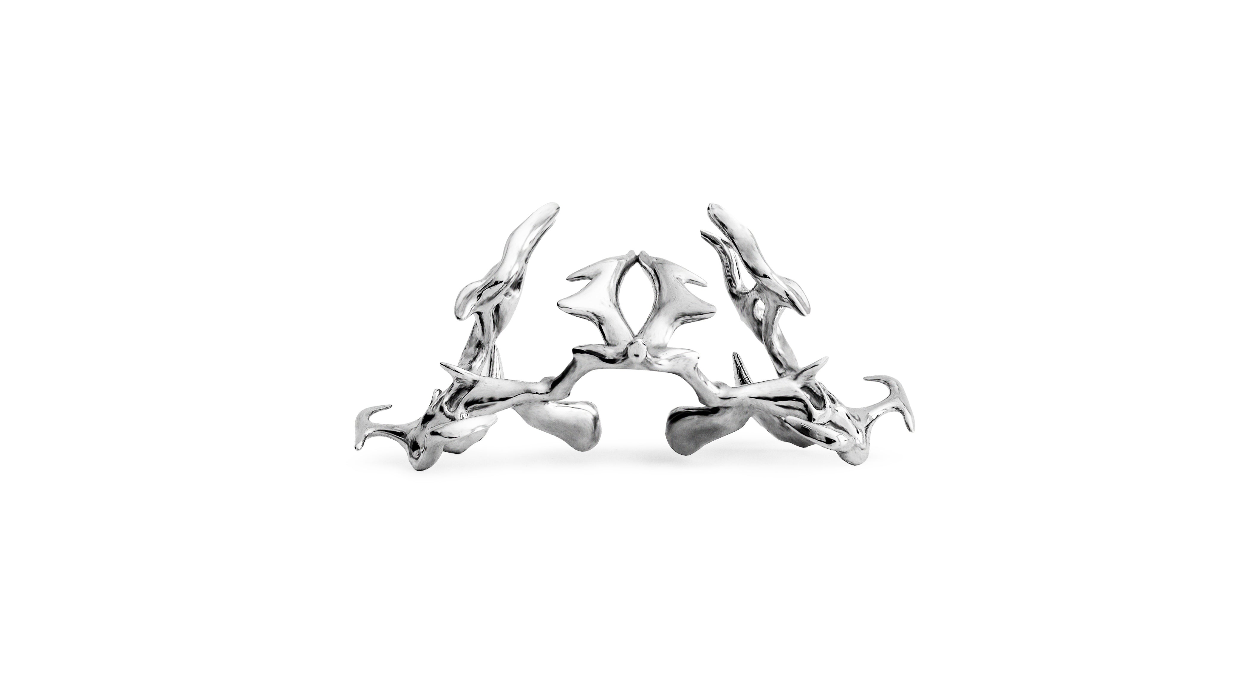 THIS ITEM IS IMPOSSIBLE TO PRODUCE WITH TRADITIONAL MEANS OF MANUFACTURE. AFTER 2 YEARS OF R&D, ONLY CUTTING-EDGE 3D PRINTING COULD ACHIEVE THIS LEVEL OF DETAIL AND COMPLEXITY. COUPLED UP WITH ADVANCED METAL COATING TECHNOLOGY, THIS PIECE ENSURES UNPARALLELED DURABILITY AND A MIRROR-LIKE CHROME FINISH.